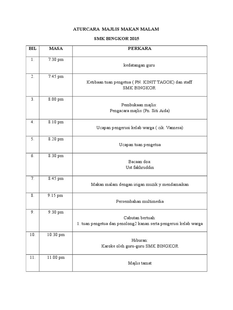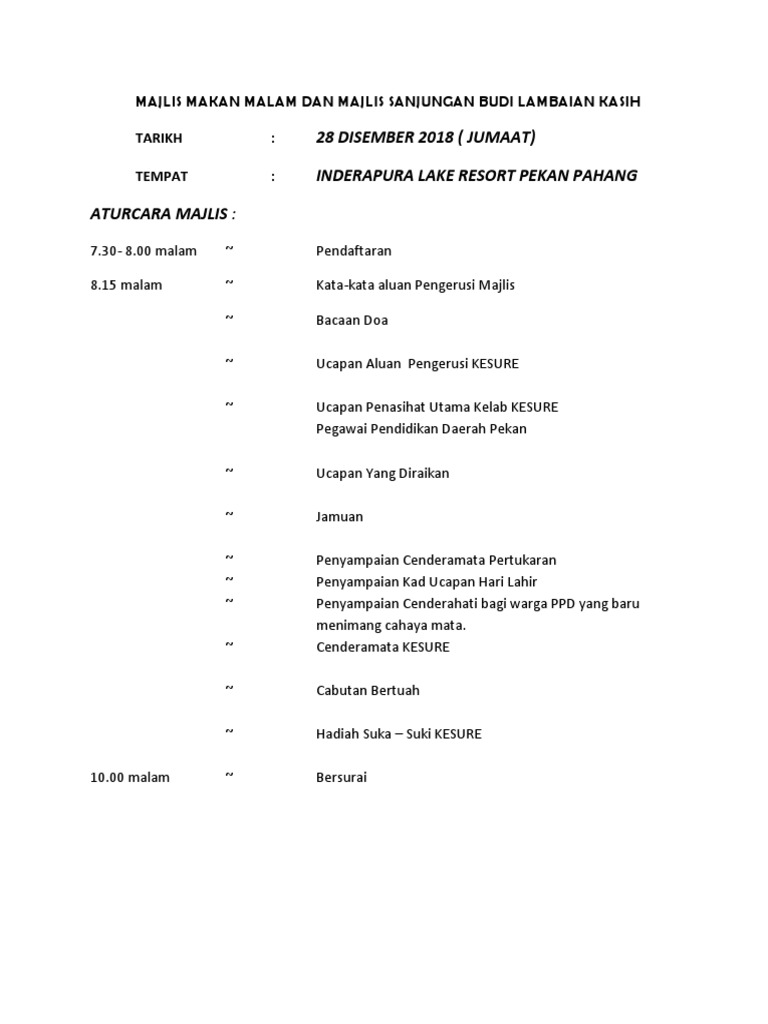 Aturcara Majlis Makan Malam Kesure 2018 Pdf